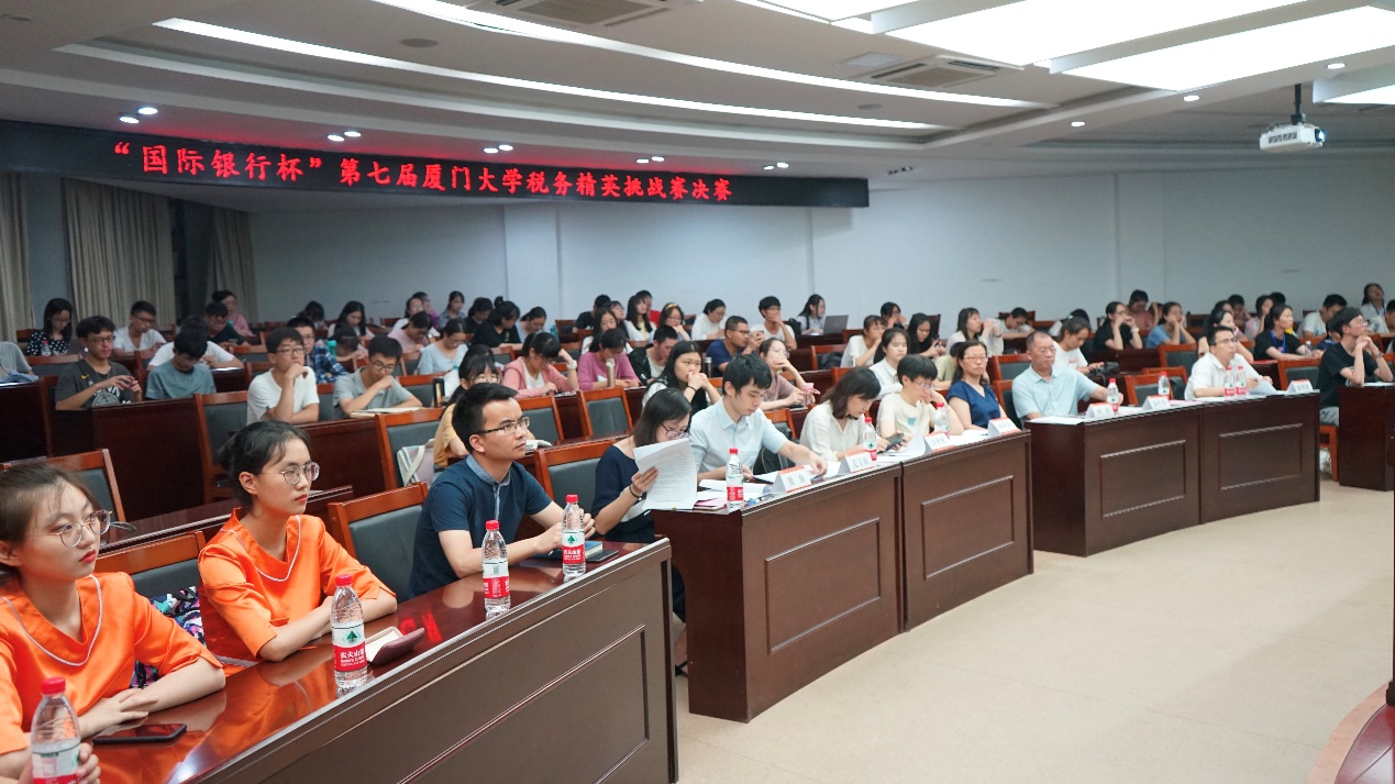 6月21日晚,“国际银行杯”第七届厦门大学税务精英挑战赛决赛暨颁奖仪式在经济楼N302举行。受邀担任决赛评委的有厦门市税务局国际税收管理处调研员孙隆英、厦门市税务局税收经济分析处调研员陈红伟、德勤深圳(厦门)分所税务与商务咨询总监乔彬彬、毕马威企业咨询(中国)有限公司税务经理毛士钦、象屿集团税务经理翁溪湖。经济学院党委副书记周蕾,经济学院财政系熊巍老师等出席活动。
